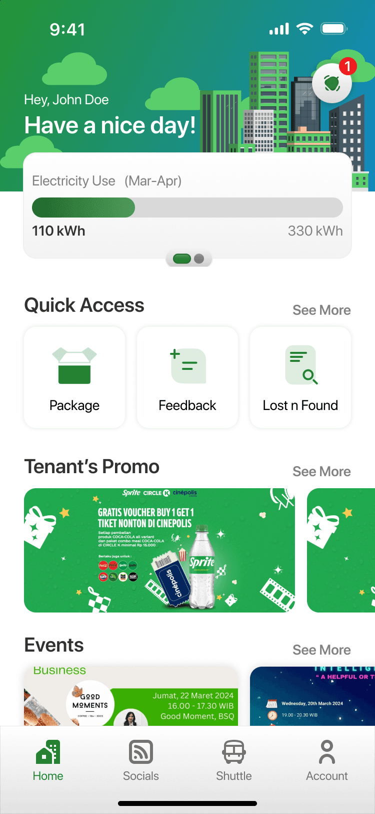 Besides, I also adjusted the home page to make it easier to access some of the frequently used features on the app. I mainly use this app to check for my package, giving feedback to the management, and see the lost and found.